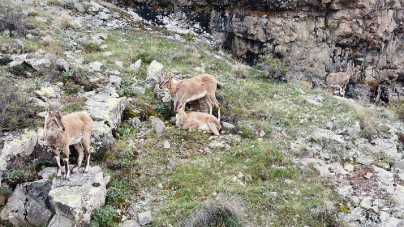 Dağların süsü yaban keçileri Gümüşhane’de dronla görüntülendi