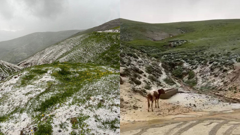 Denizden yüksekliği 2 bin 350 metre olan Kazıkbeli Yaylası ve çevresinde de etkisini gösteren dolu yağışı nedeniyle yüksek kesimlerde Haziran ayında kış ayında ortaya çıkan kar manzarasına benzer görüntüler ortaya çıktı.