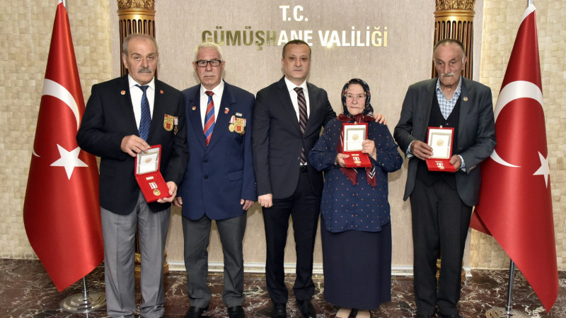 Gümüşhane’de 3 Kıbrıs gazisine daha KKTC tarafından gönderilen Milli Mücadele Madalyası ve beratları düzenlenen törenle Vali Kamuran Taşbilek tarafından verildi.