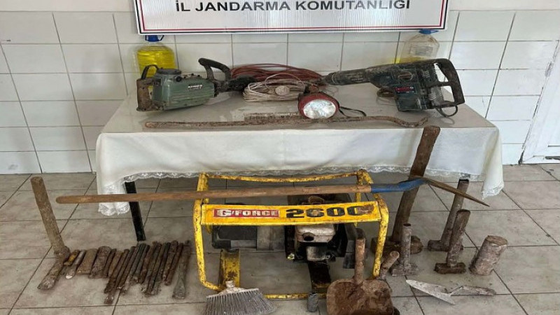 Ekipler olay yerinde 1 adet jeneratör, 2 adet hilti, 1 adet balyoz, 1 adet el feneri, 1 adet kazma, 2 adet kürek ve 10 litre benzin ele geçirdi.